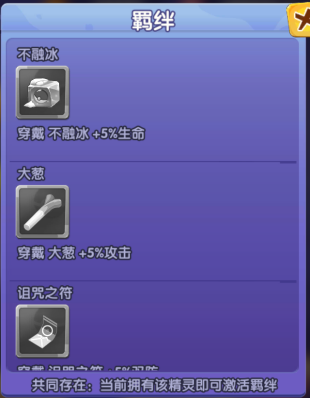 不同的精灵之间存在着羁绊,同时上阵羁绊精灵战力倍增